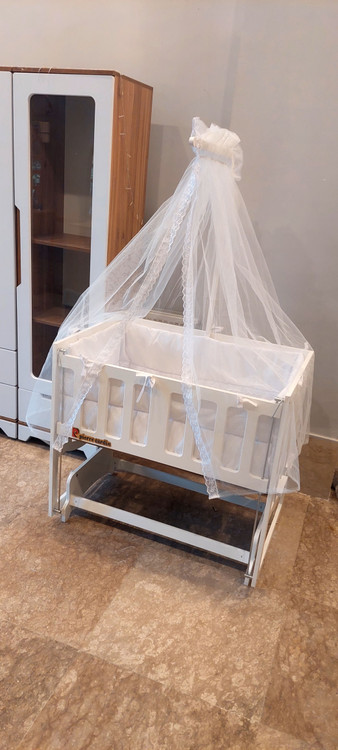 تخت کنار مادر گهواره ای مدل پییرکاردیین داری قابلیت های بسیاری مانند: ۱_قابلیت تنظیم ارتفاع۲_قابلیت شیبدار شدن و آنتی رفلکس معده کودک ۳_قابلیت ثابت شدن گهواره (تبدیل به تخت کودک شدن)_۴نرده جلو متحرک ۵_تخت شامل تشک روتختی بالشت حفاظ داخلی و تور پشه بند