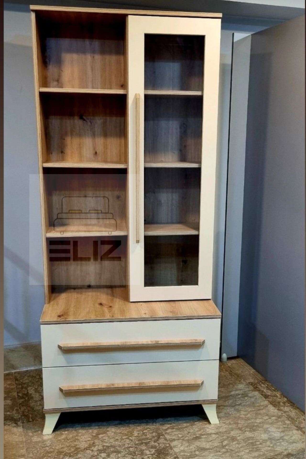 کتابخانه تلفیق شده با ویترین و کشو عرض۸۰ سانتی متر